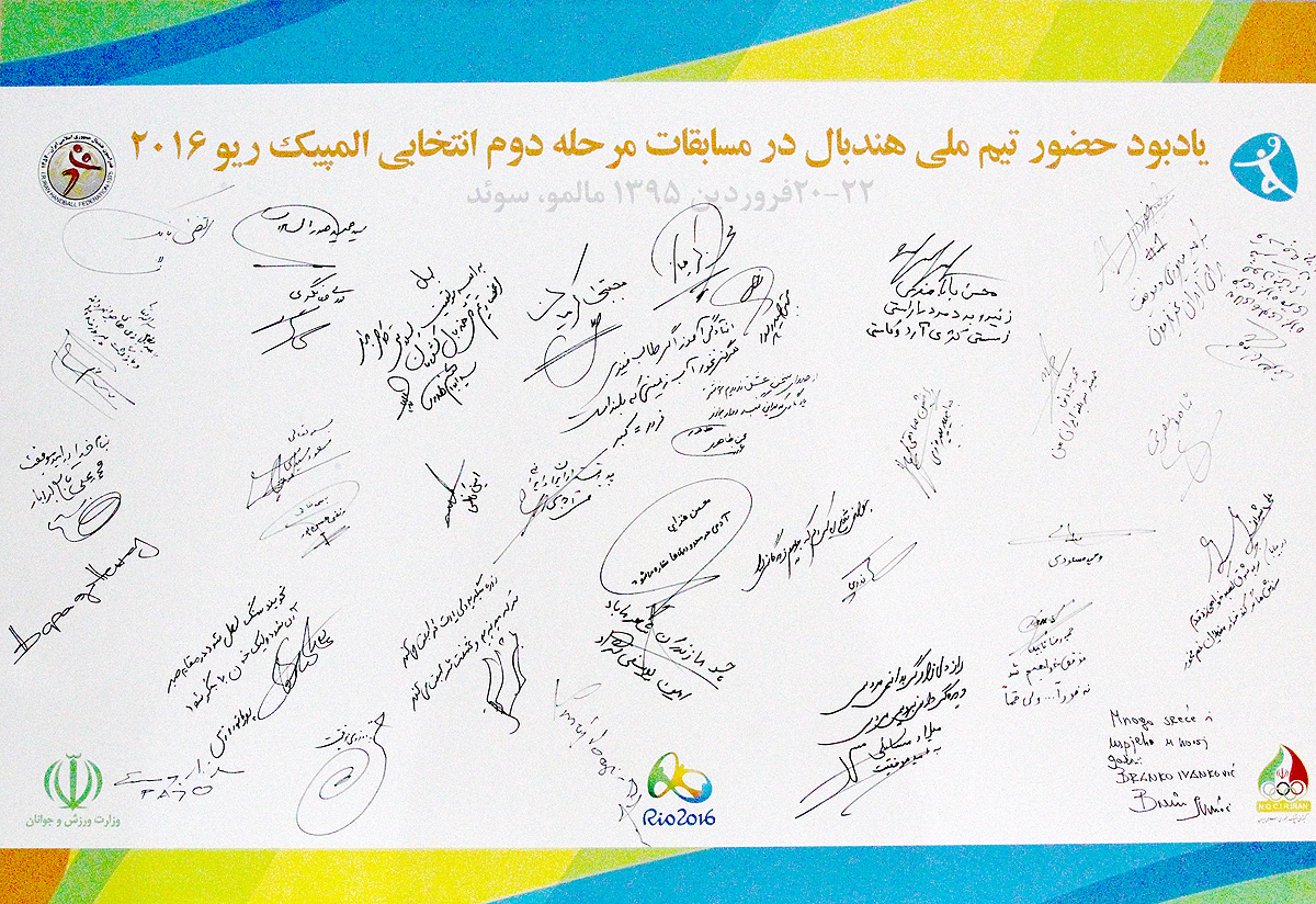 یادبود حضور تیم ملی هندبال ایران در مرحله نهایی انتخابی المپیک 2016 ریو در سوئد